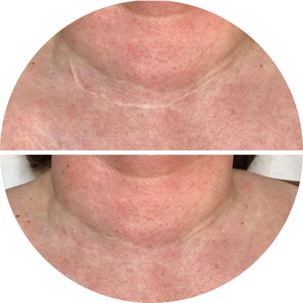 Elle permet de réduire visiblement les cicatrices, vergetures ou séquelles d’interventions, tout en respectant la peau et le rythme biologique de réparation.